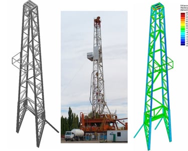 Se desarrollaron modelos tridimensionales y numéricos mediante análisis por elementos finitos (FEM) para evaluar la respuesta estructural de instalaciones destinadas a la extracción de petróleo y gas. Este trabajo incluyó la elaboración de planos, la verificación de la integridad de las estructuras conforme a la normativa vigente y la identificación de zonas con mayor riesgo potencial de fatiga o desgaste, con el objetivo de optimizar planes de mantenimiento y reducir costos operativos.
